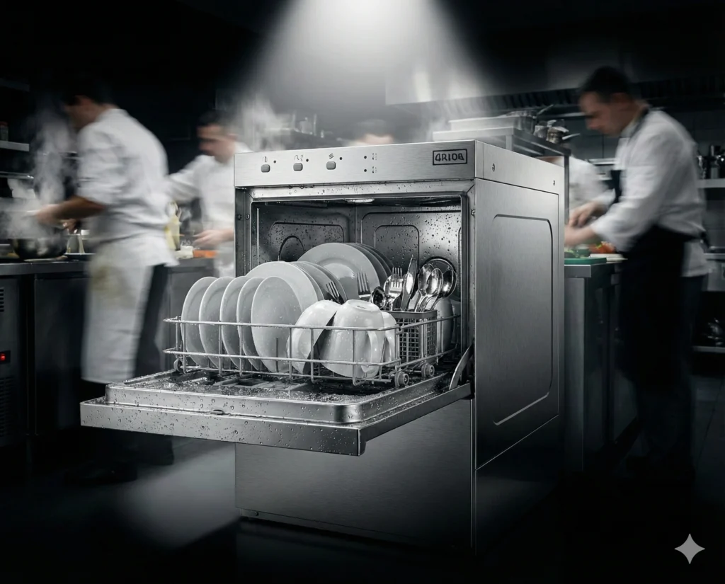 Куполна : За ресторанти (50+ места). Позволява “линеен процес” (мръсно -> миене -> чисто) без кръстосване и без вдигане на тежко.