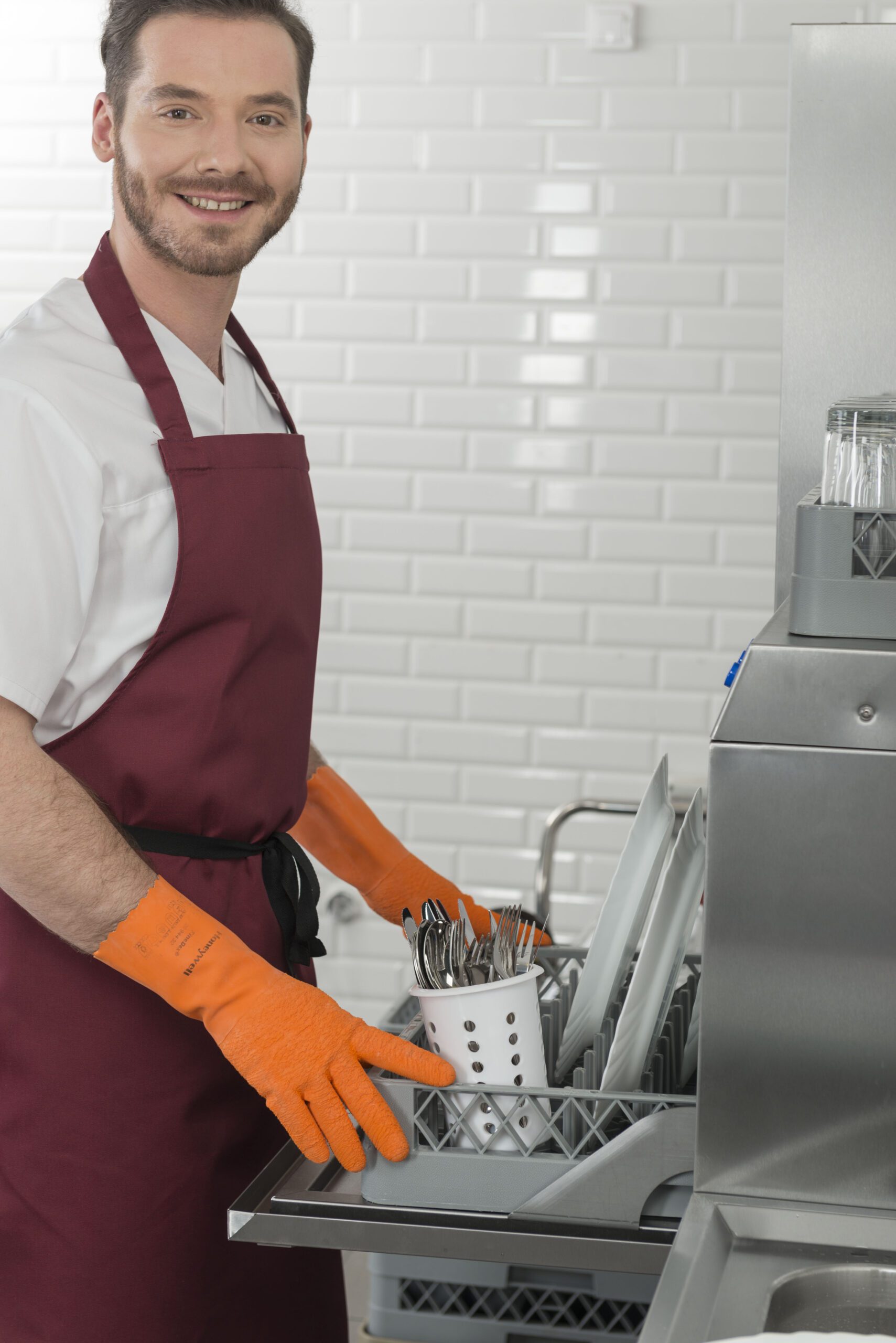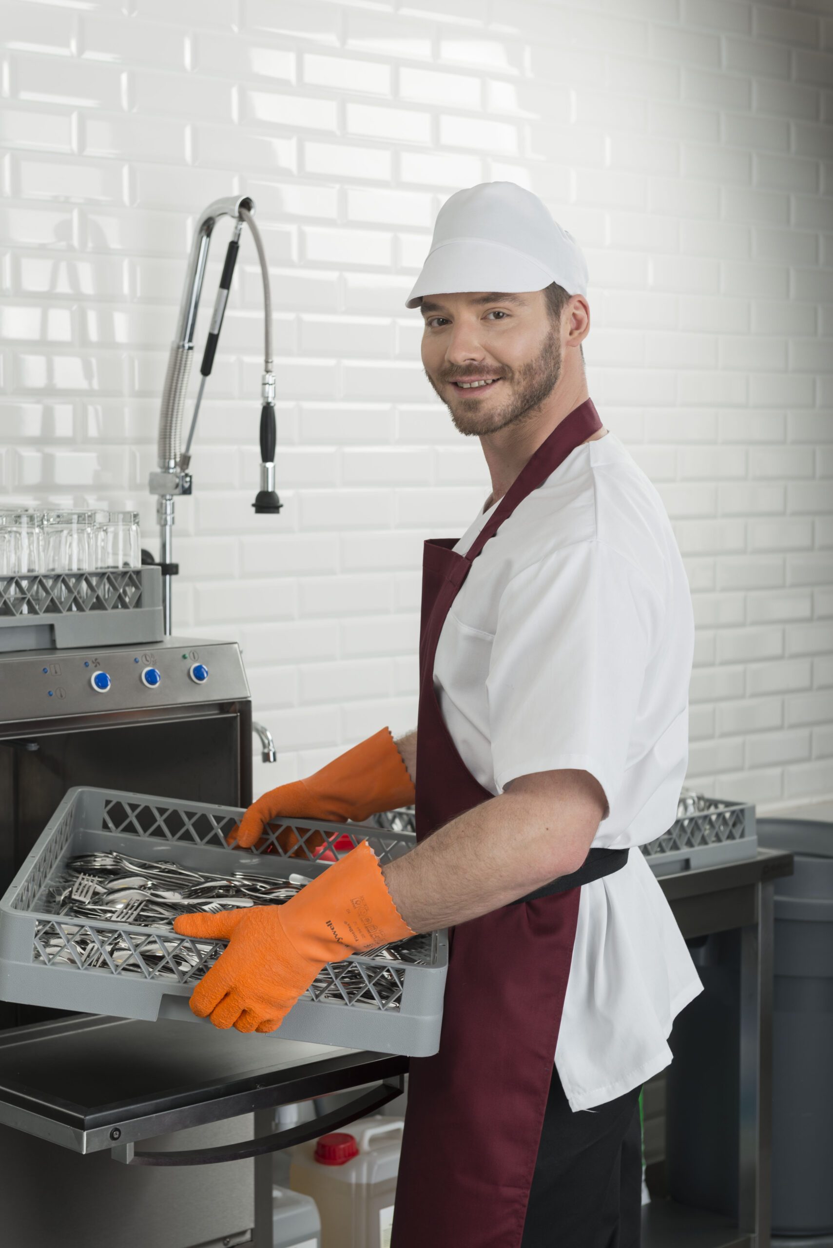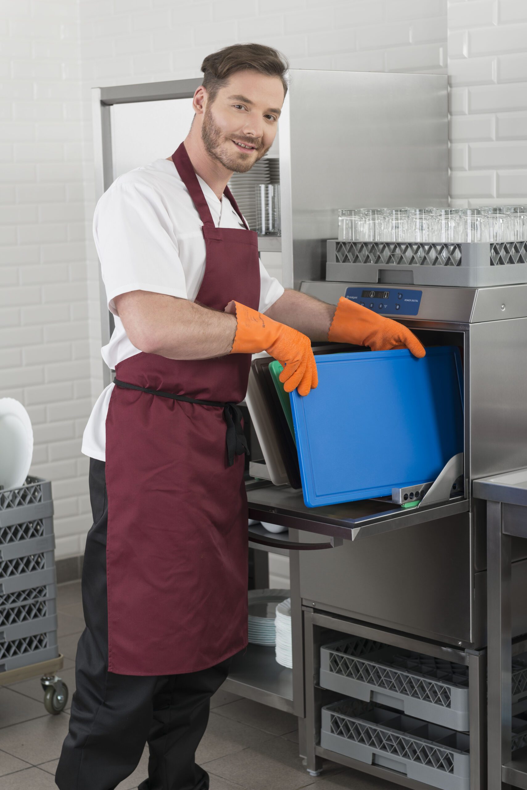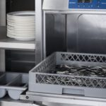 Миялна за големи съдове: За колективно изхранване, кухни майки, пекарни, кетъринг и др. Големия отвор лесно побира тави и гастронорми. Високо налягане, което “реже” мазнината от тавите. Не е подходяща за чаши (може да ги счупи).